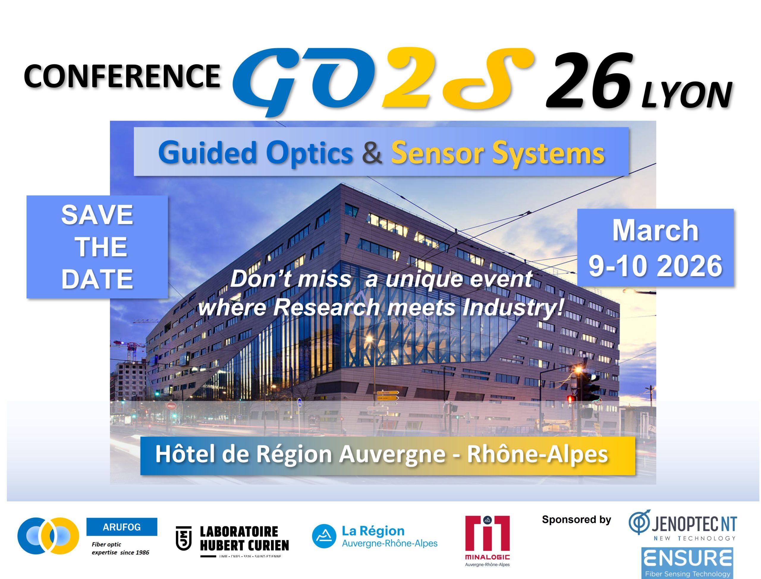 Après le succès des éditions de Paris (2019), Lyon (2020), Bordeaux (2022) et Lyon (2024), l’édition 2026 se tiendra à nouveau à Lyon, à l’Hôtel de la Région, et sera co-organisée par le Laboratoire Hubert Curien et l’association ARUFOG.